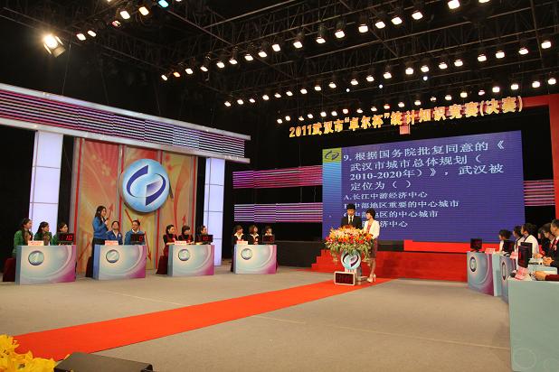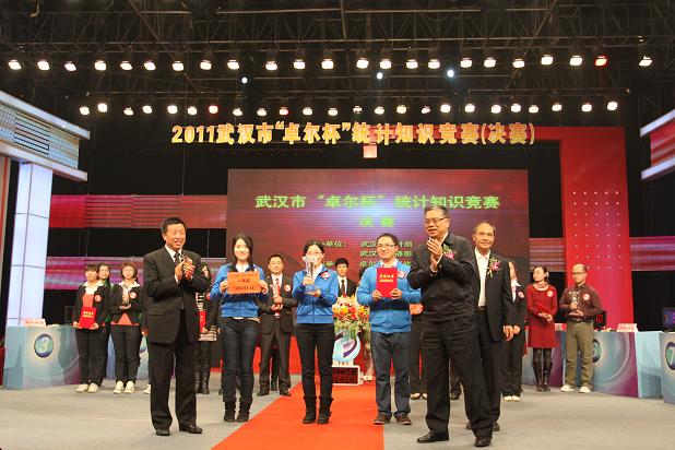 由武汉市统计局、武汉市广播影视局联合主办,卓尔发展(武汉)有限公司冠名协办,武钢集团和中百集团共同协办的2011武汉市“卓尔杯”统计知识竞赛决赛,于11月28日在武汉电视台香港路演播厅拉开帷幕。参加决赛的8支代表队是从32支初赛代表队中选拔产生的。其中有4支市、区、街统计系统代表队,2支企业代表队,2支大学代表队。通过激烈角逐,武汉市经济社会调查队荣获本次竞赛一等奖;汉南区统计局、湖北大学、湖北经济学院3支代表队荣获本次竞赛二等奖;青山区统计局、青山区街道统计联队、南国大武汉家装、武汉嘉华汽车塑料制品有限公司4支代表队荣获本次竞赛三等奖;参加本次竞赛的其他24支代表队获优秀奖。8支参赛队组织的近300名拉拉队员到现场观看比赛,为参赛队加油。