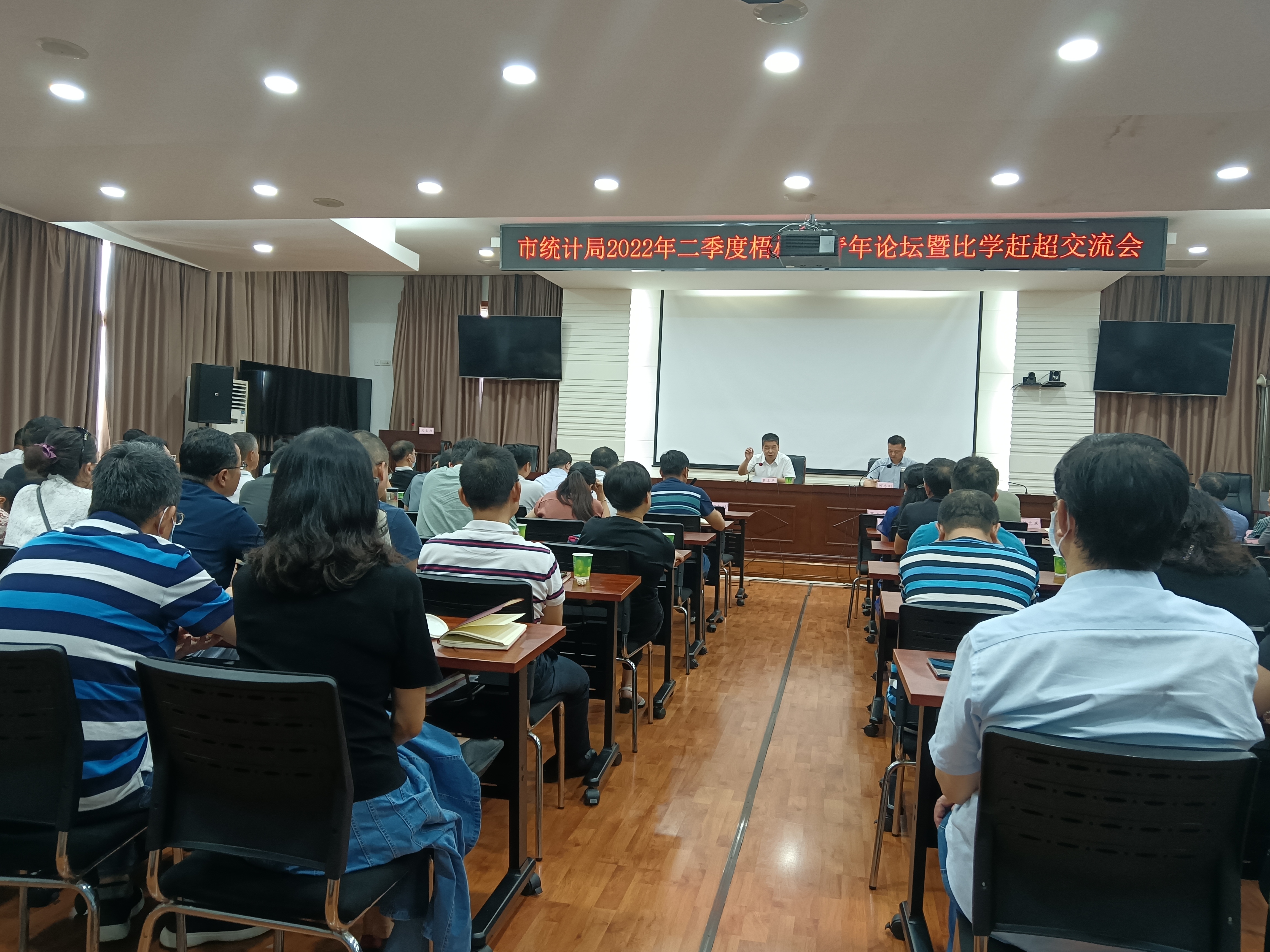 为深入学习宣传贯彻习近平总书记考察湖北武汉重要讲话精神,展现统计系统干部职工牢记殷殷嘱托,感悟发展成就,展望美好前景的生动实践,在思想共振、心灵共鸣中凝聚奋进新时代的昂扬斗志,营造喜迎党的二十大浓厚氛围,持续深化“梧桐书语”机关党建品牌创建成果。7月26日下午,我局举办2022年二季度“梧桐·青年论坛”暨“比学赶超”交流会。市统计局党组书记、局长夏喜平出席会议并讲话。全局干部职工参加了会议。