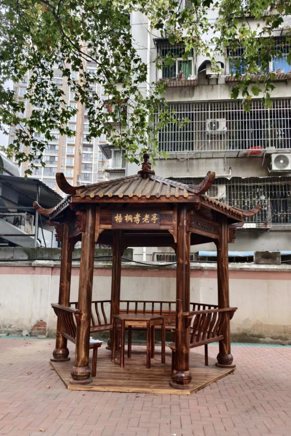 “梧桐孝老亭”如今已经变身小区新晋“打卡地”,成为居民心之向往的好去处。居民们在此开展邻里互助、休闲娱乐活动,社区也在这里开展防电信诈骗、安全生产、医疗保健、法律常识等宣传,社区新了、环境美了、邻里关系更和谐了。“梧桐孝老亭”的建设不仅让老旧小区的公共空间实现“改头换面”,更让居民在家门口体会到了看得见、摸得着的幸福,进一步助推了资源共享、发展共赢、治理共建和成果共享。