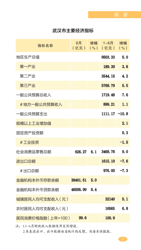 2023年1-6月武汉市国民经济主要指标