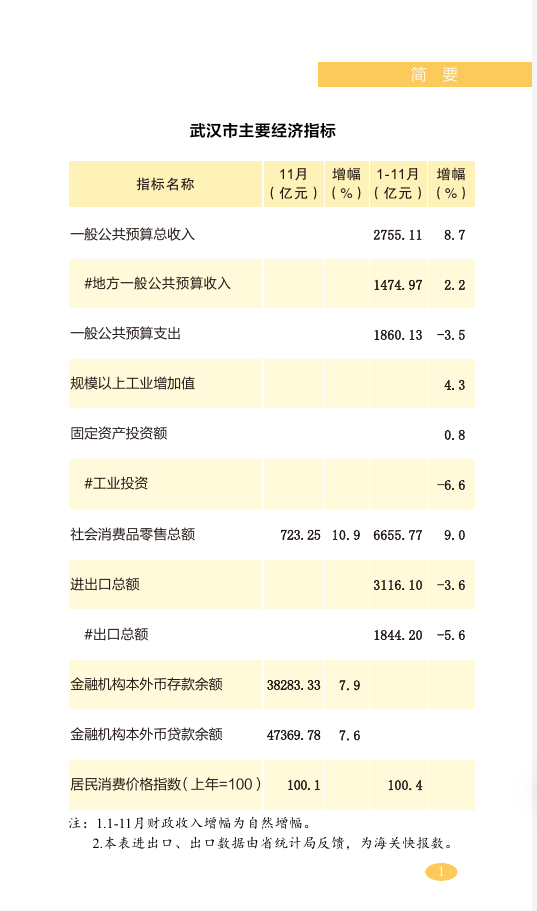2023年1-11月武汉市国民经济主要指标